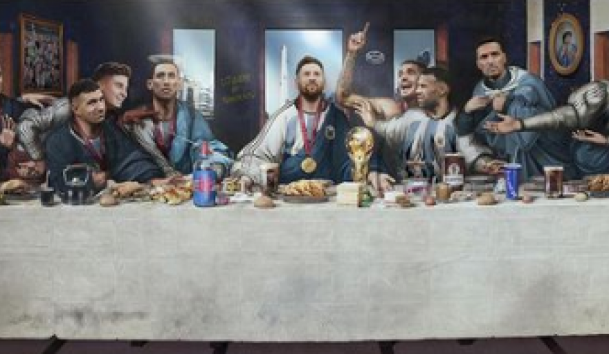 El estudio creativo Citizens of Tomorrow recreó para Navidad el cuadro pintado por el artista Leonardo da Vinci, durante 1495 y 1498 y que permanece en la pared sobre la que se pintó originalmente: en el refectorio del convento dominico de Santa Maria delle Grazie, en Milán (Italia). En este caso, su permanencia resonó en las redes sociales, con esta obra de arte que intercambió a Jesús por Lionel Messi y a sus apóstoles por varios de los jugadores.