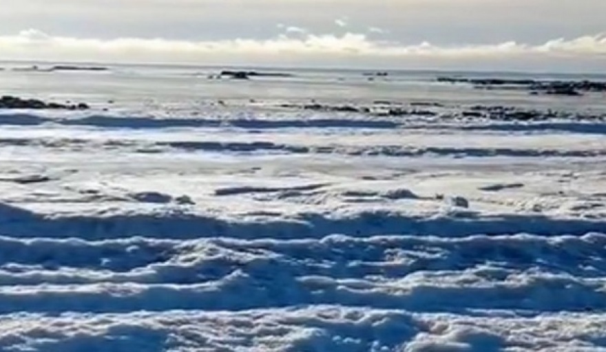 Un fenómeno natural inusual sorprendió a Tierra del Fuego cuando el mar en la zona de San Sebastián, al norte de Río Grande, se congeló.