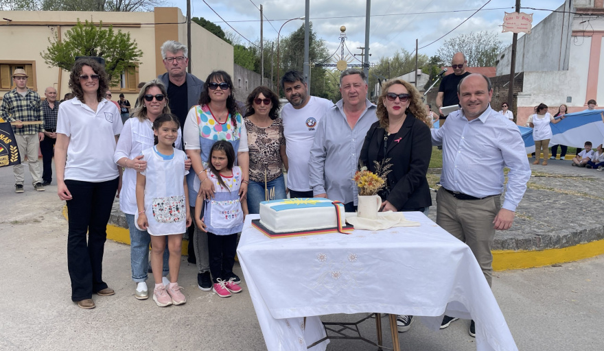 La celebración incluyó además la realización de un desfile y el tradicional corte de la torta de cumpleaños. Se culminó con una merienda compartida en la Escuela N° 5.