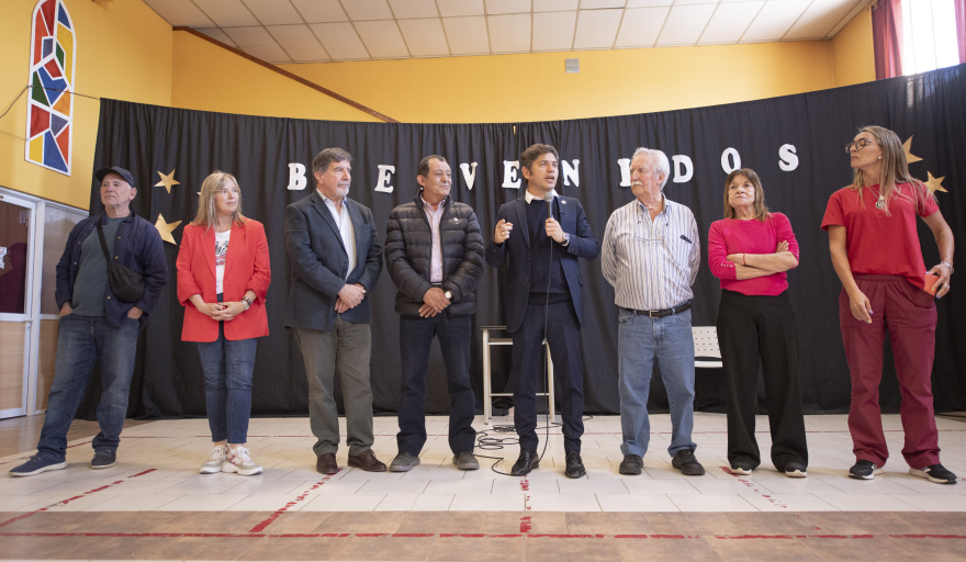 El gobernador de la provincia de Buenos Aires, Axel Kicillof, recorrió este martes los avances de las obras de construcción de un nuevo jardín maternal en el municipio de Benito Juárez, donde visitó también la Escuela de Educación Especial N°7949 y el Centro de Día “Despertares”, junto al intendente Julio Marini y el director general de Cultura y Educación, Alberto Sileoni.