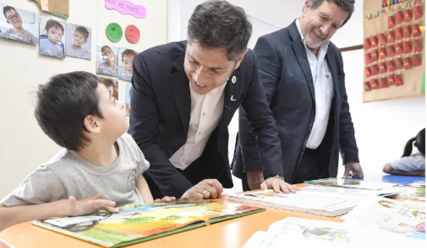 El gobernador bonaerense Axel Kicillof visitó este martes la Escuela de Educación Especial N°5 del municipio de Pergamino, donde mantuvo un encuentro con docentes, familias y profesionales del ámbito de la discapacidad. Estuvo acompañado por el director general de Cultura y Educación, Alberto Sileoni, el concejal electo Alejandro Masagué; y la directora del establecimiento, Valeria Bachanini.