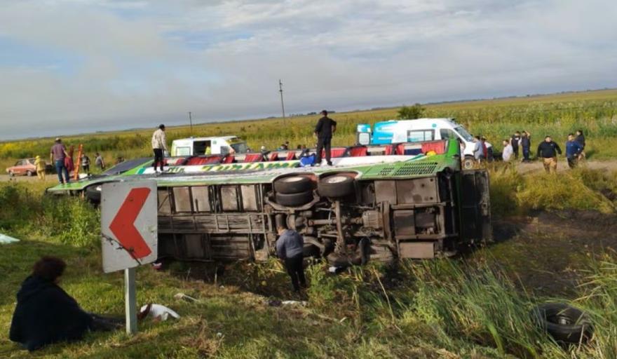 Volcó un micro en la Ruta 2 a la altura de General Pirán: dos muertos