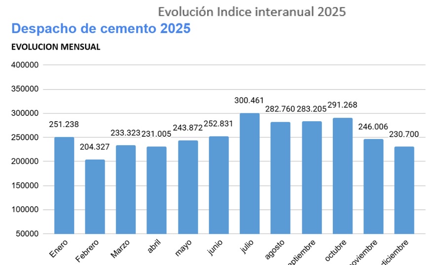 Los despachos de cemento en el Partido de Olavarría muestran, durante 2025, una leve recuperación en términos anuales, aunque en un contexto de elevada volatilidad y niveles de actividad deprimidos respecto de años anteriores.