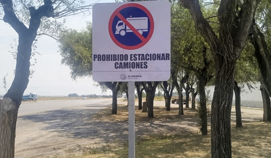12:40 |La señalética, instalada por personal de Protección Ciudadana, informa acerca de la prohibición de estacionar camiones en el sector.