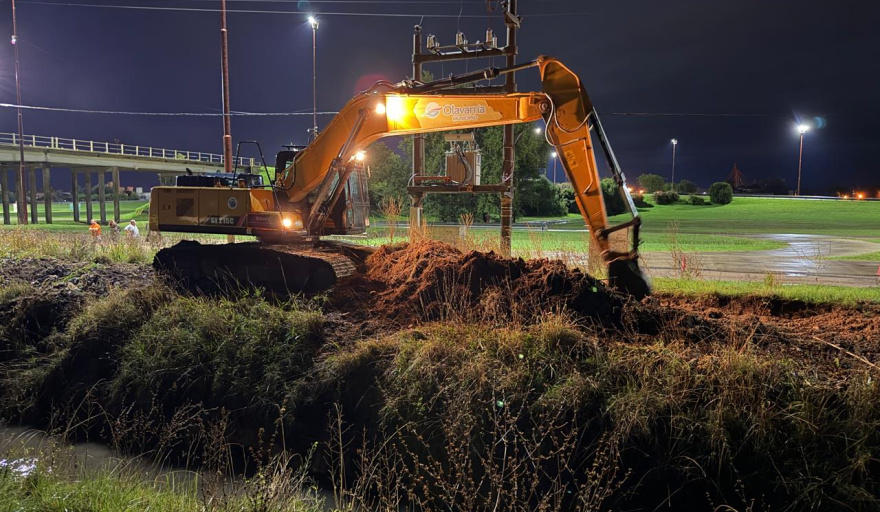 En horas de la madrugada, con la presencia del intendente Maximiliano Wesner y la coordinación del secretario de obras públicas Orfel Fariña, se realizaron en el barrio Eucaliptus nuevas tares sobre canales aliviadores mediante la utilización de una retro excavadora.