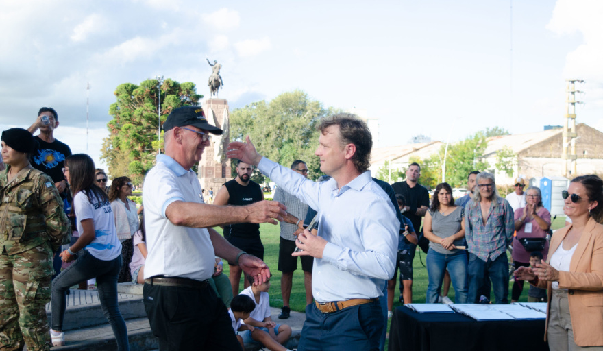 “A ustedes, queridos veteranos, honor y gratitud por haber puesto el cuerpo, el alma. Son de las mejores expresiones de nuestros elementos patrios, son un pedazo de bandera, una estrofa de nuestro himno, son un pedazo de nuestra Patria. Honor y gratitud para ustedes veteranos de guerra, a la memoria de los 649 caídos en Malvinas. Viva la patria!”, concluyó, en un grito que cosechó el grito de todas las personas presentes.