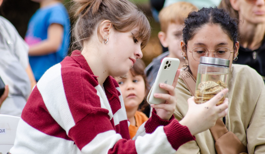 La propuesta convocó a un gran marco de público, en el que pudo verse familias, amigas, amigos y público en general, que disfrutó y aprendió de una jornada que tuvo una parte teórica pero también práctica frente a la Casona “Doctor Carlos Alberto Romero”, pero también una recorrida guiada en el reptilario.